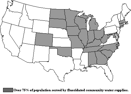 States with 75% of the population served by fluoridated community water supplies.*